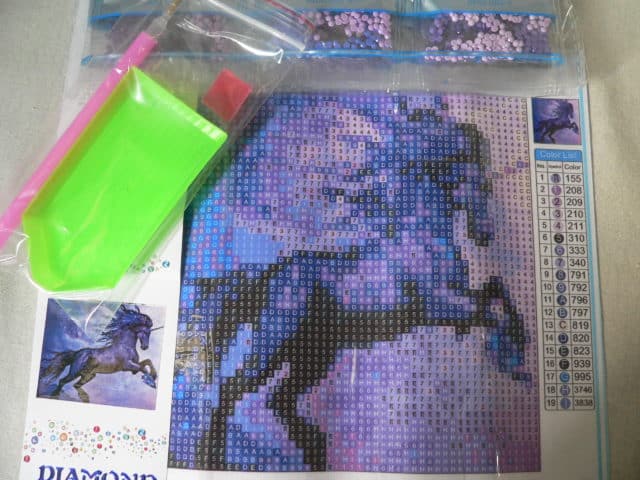 This is a full drill canvas kit, measuring 20cm x 20cm. Not often do you find a stunning black unicorn, so here it is, the colours when made up is WOW